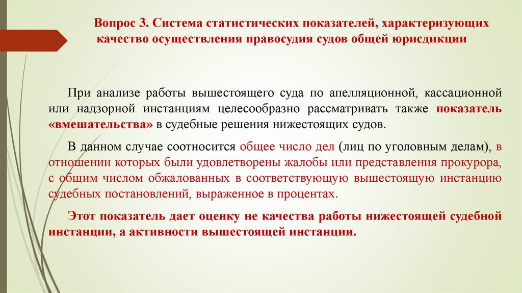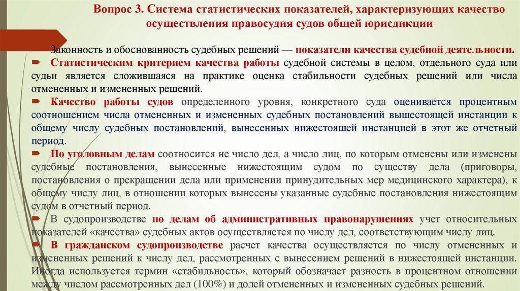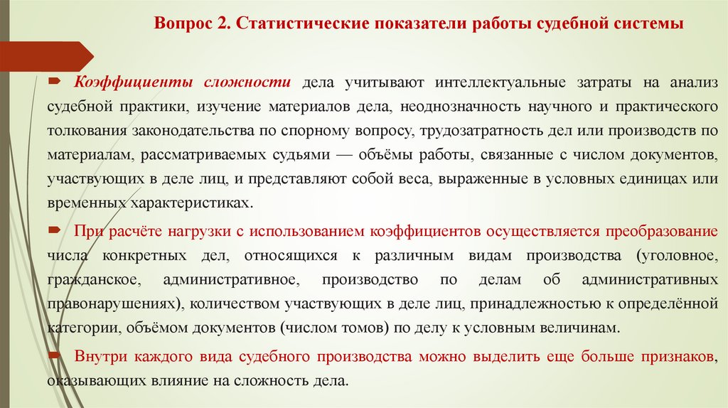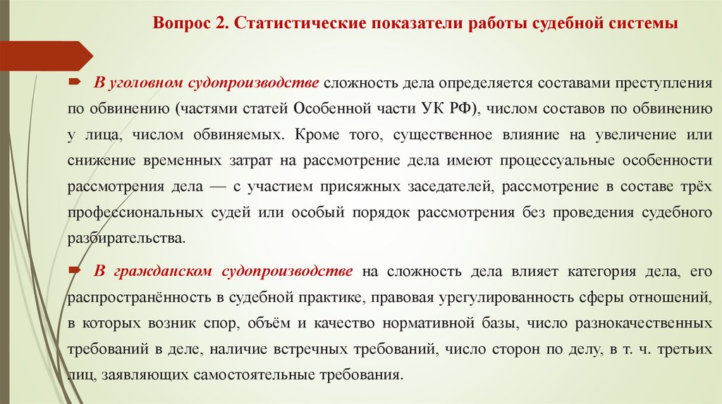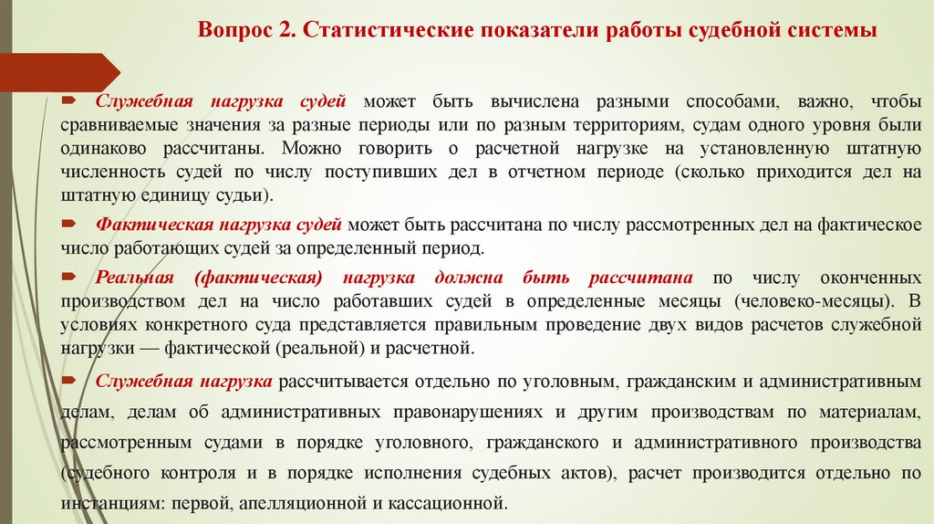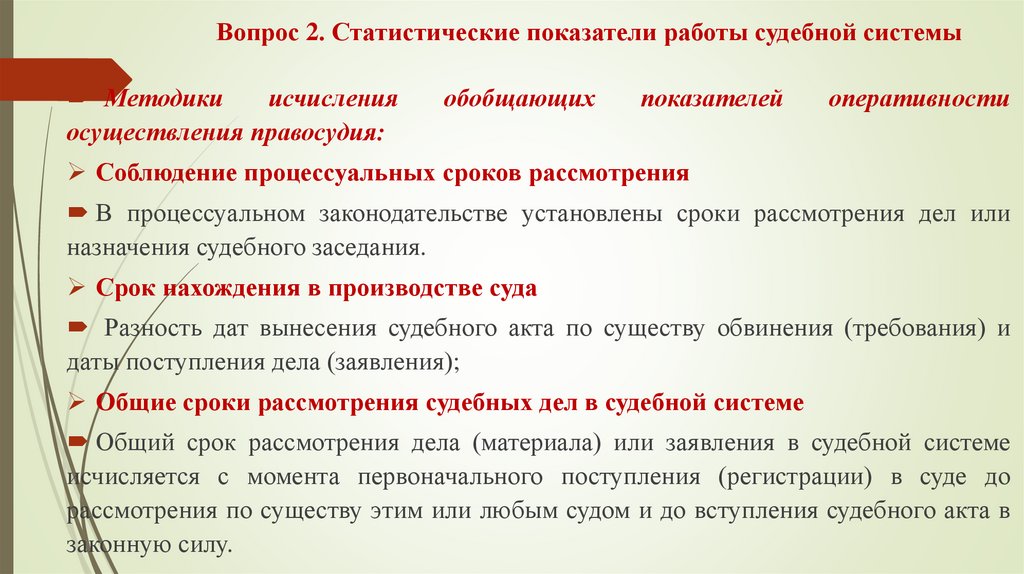 8. Вопрос 2. Статистические показатели работы судебной системы