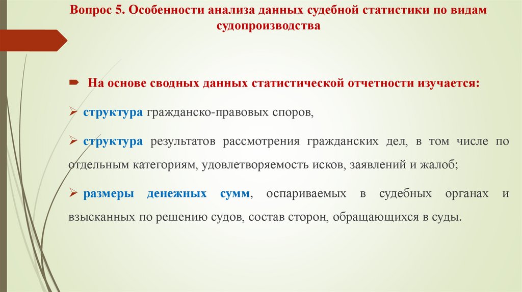 25. Вопрос 5. Особенности анализа данных судебной статистики по видам судопроизводства