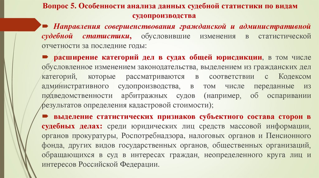 27. Вопрос 5. Особенности анализа данных судебной статистики по видам судопроизводства