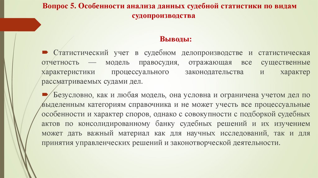 26. Вопрос 5. Особенности анализа данных судебной статистики по видам судопроизводства