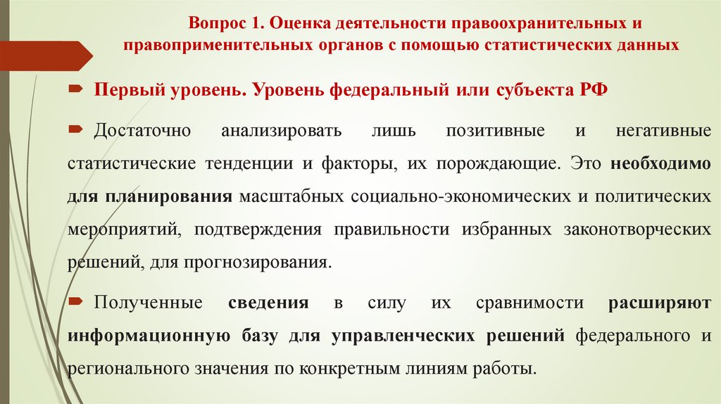 5. Вопрос 1. Оценка деятельности правоохранительных и правоприменительных органов с помощью статистических данных