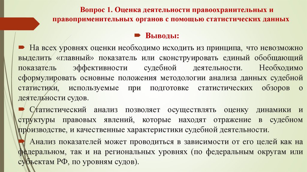 6. Вопрос 1. Оценка деятельности правоохранительных и правоприменительных органов с помощью статистических данных