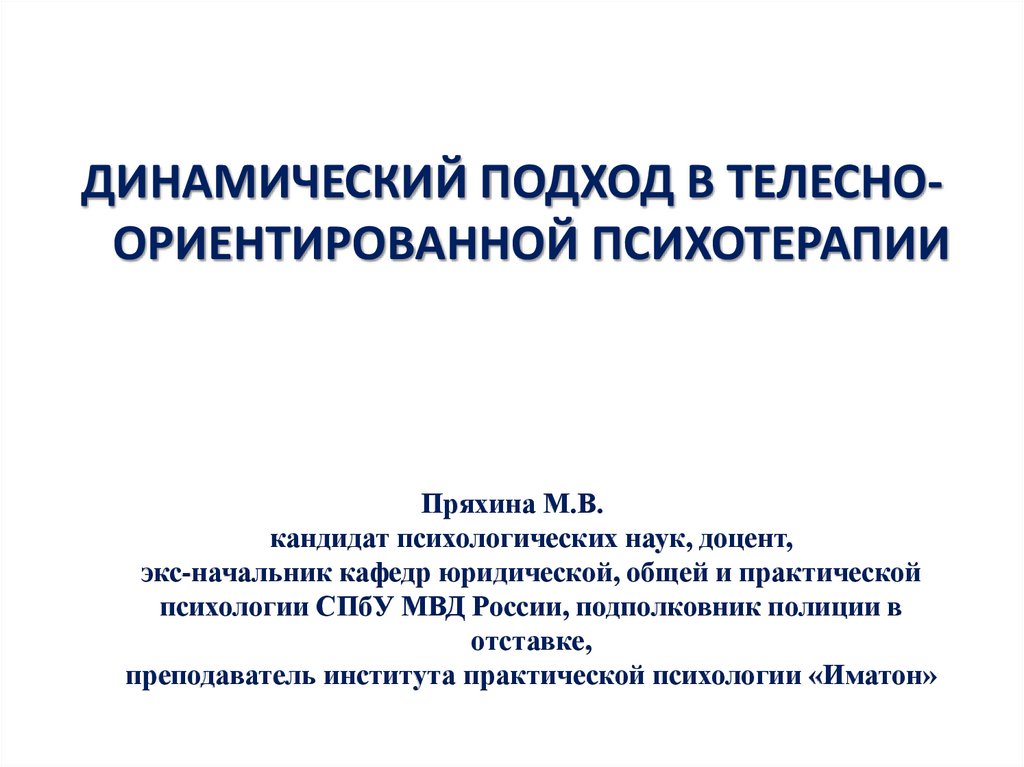 ДИНАМИЧЕСКИЙ ПОДХОД В ТЕЛЕСНООРИЕНТИРОВАННОЙ ПСИХОТЕРАПИИПряхина М.В.