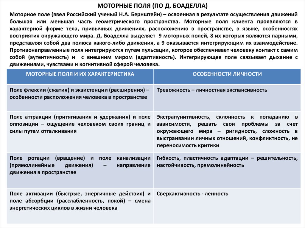 6. МОТОРНЫЕ ПОЛЯ (ПО Д. БОАДЕЛЛА)