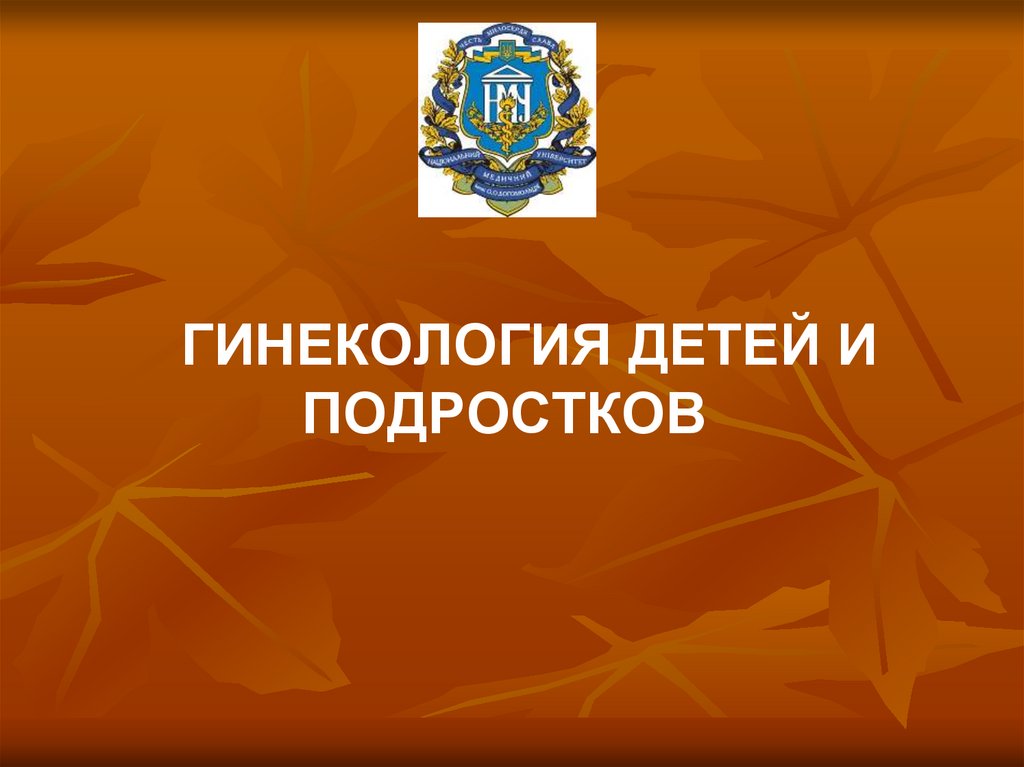 1. ГИНЕКОЛОГИЯ ДЕТЕЙ И ПОДРОСТКОВ