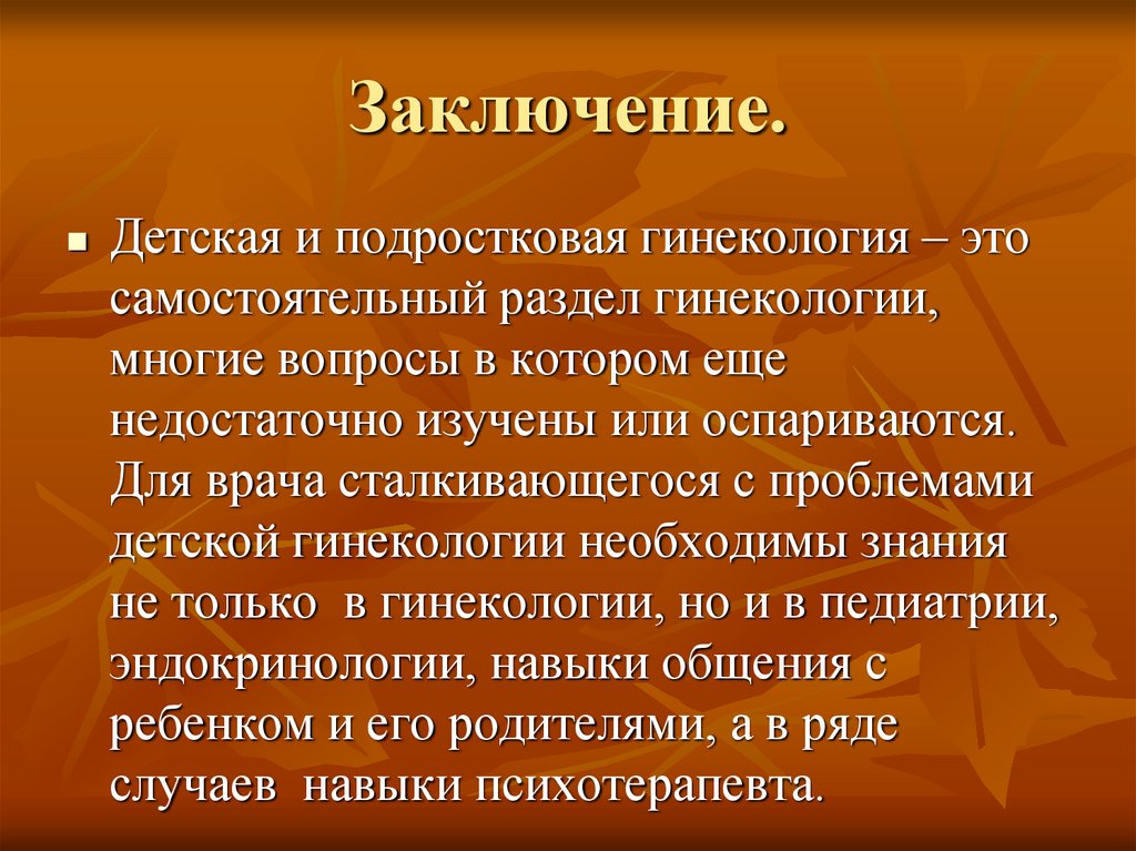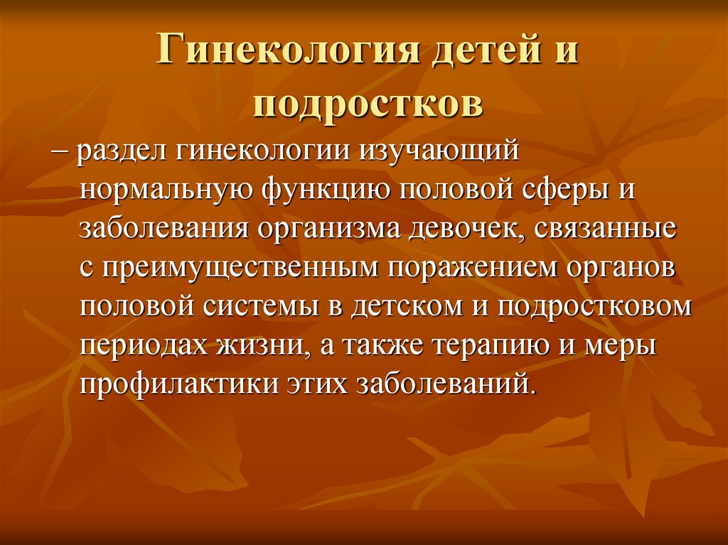 Детская и подростковая гинекология – этосамостоятельный раздел гинекологии,
