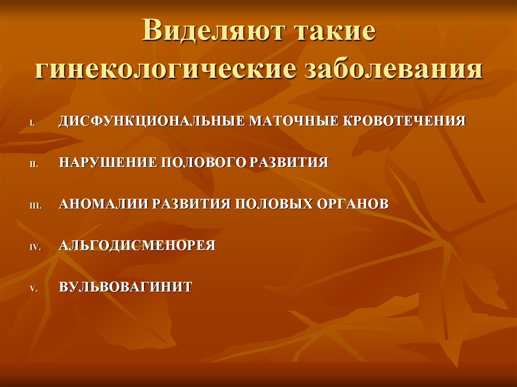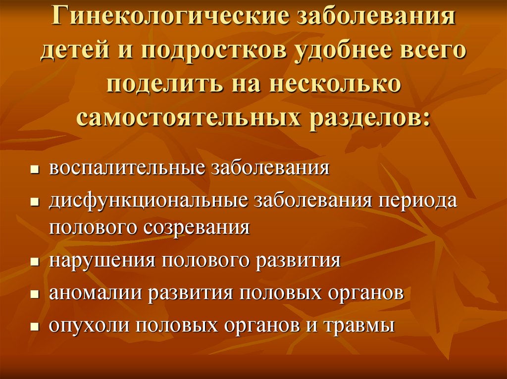 8. Гинекологические заболевания детей и подростков удобнее всего поделить на несколько самостоятельных разделов:
