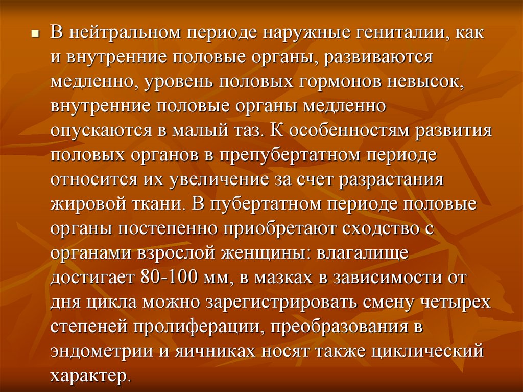 В нейтральном периоде наружные гениталии, каки внутренние половые органы, развиваются