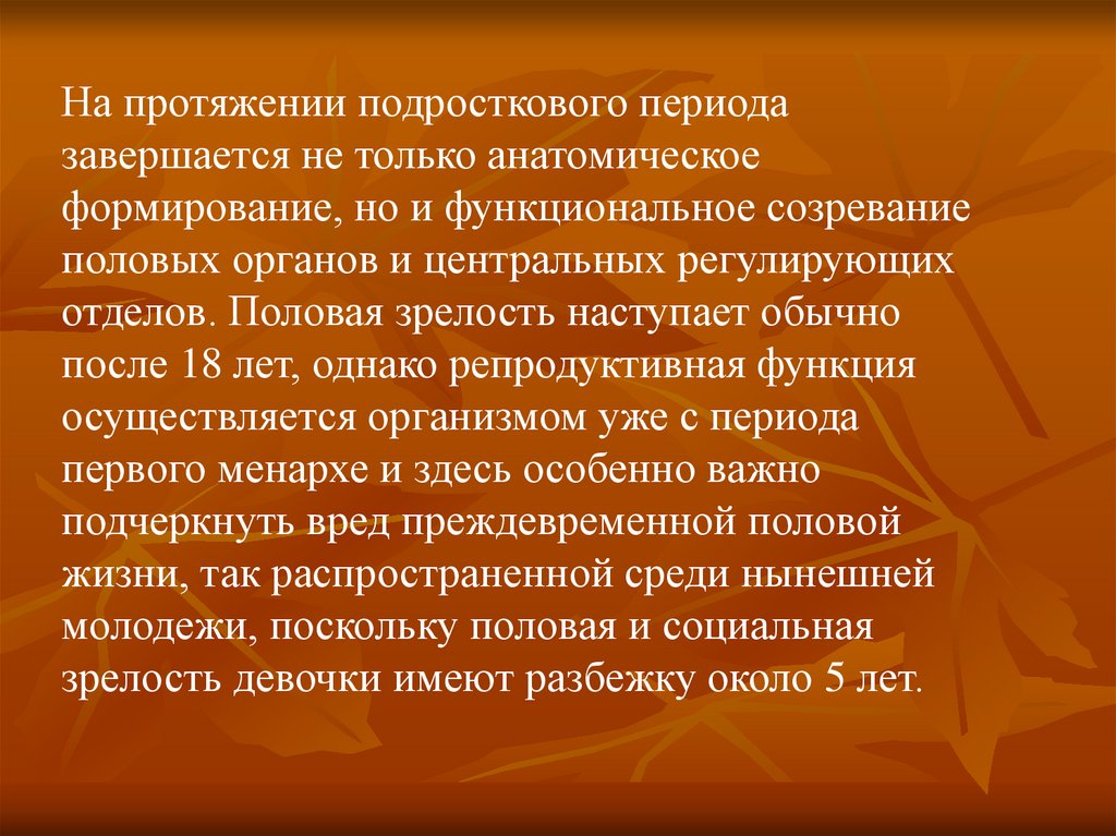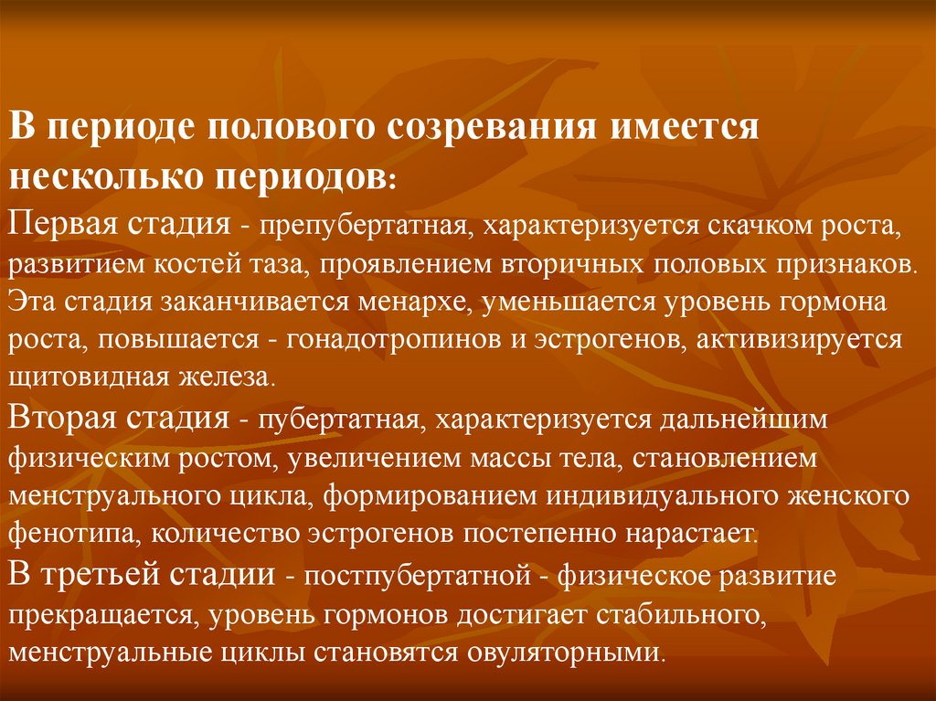 Эта стадия заканчивается менархе, уменьшается уровень гормона