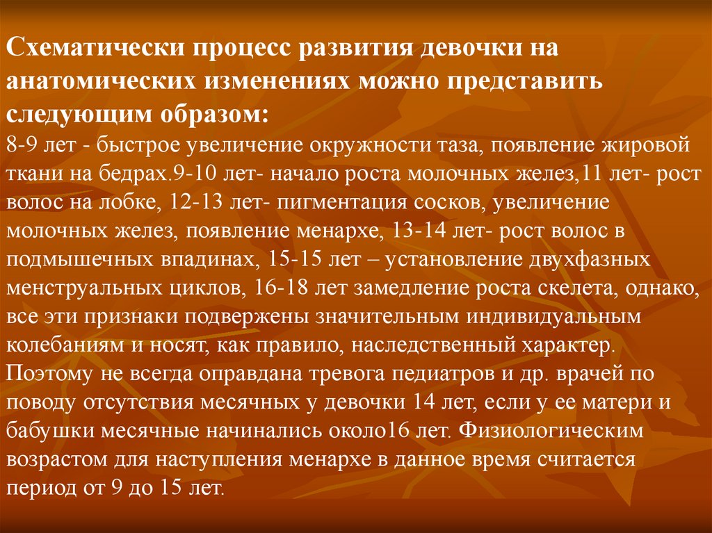 ткани на бедрах.9-10 лет- начало роста молочных желез,11 лет- рост