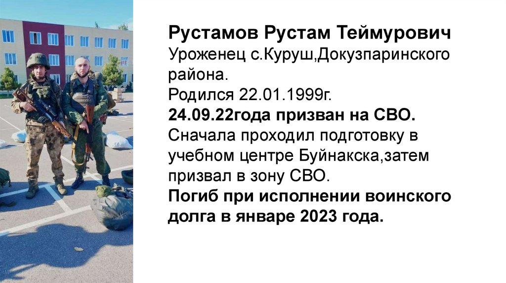 Рустамов Рустам ТеймуровичУроженец с.Куруш,Докузпаринского