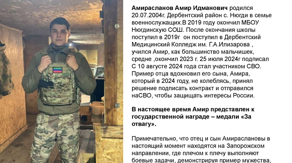 Амирасланов Амир Идманович родился20.07.2004г. Дербентский район с. Нюгди в семье