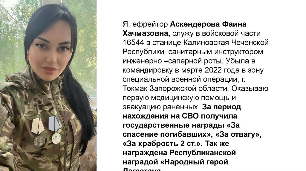 Я, ефрейтор Аскендерова ФаинаХачмазовна, служу в войсковой части