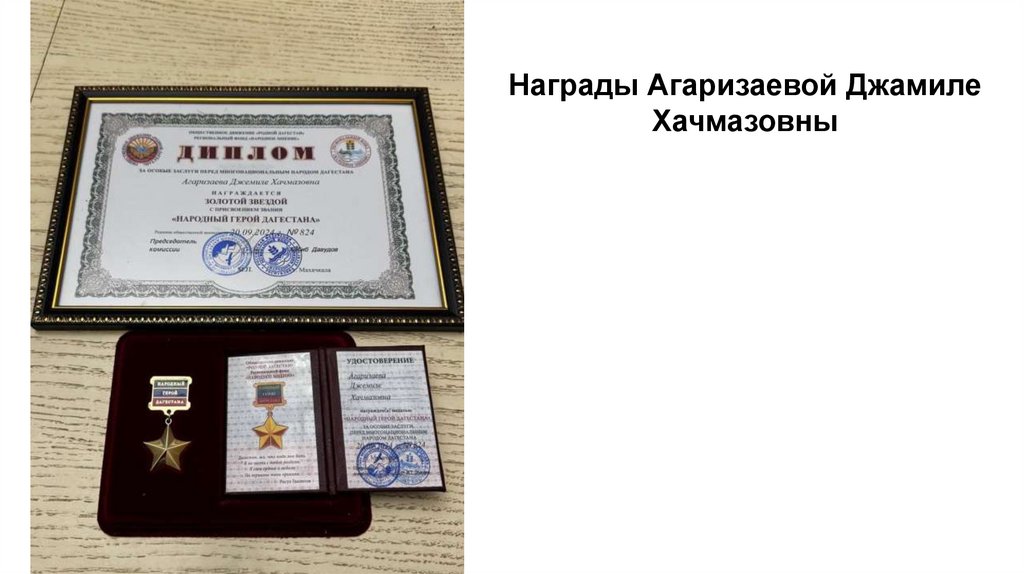 Награды Агаризаевой ДжамилеХачмазовны