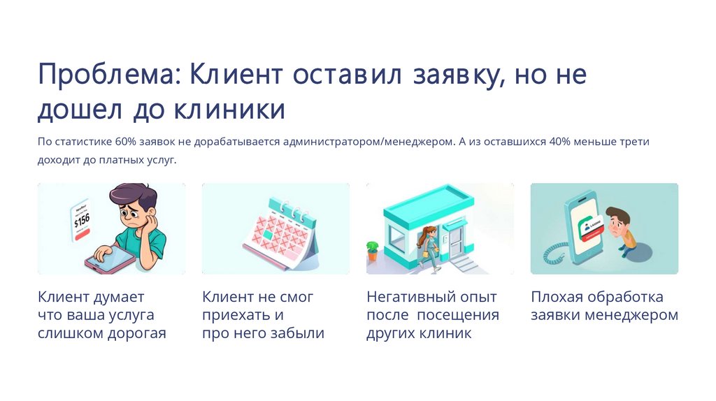 Проблема: Кл иент остав ил заяв ку, но недошел до кл иники