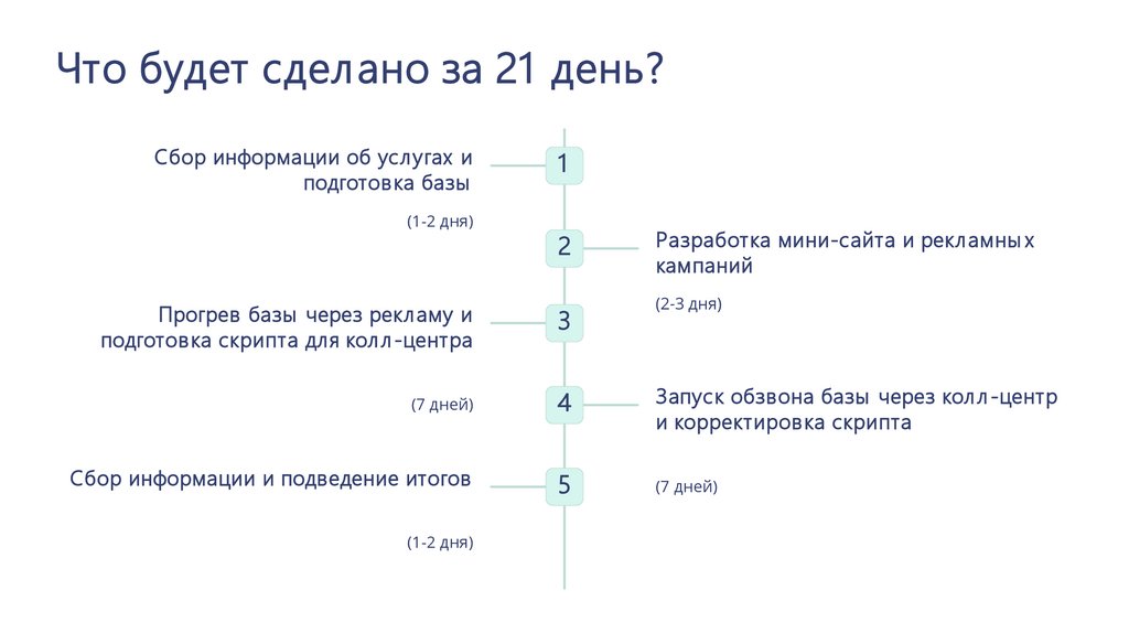 Что будет сдел ано за 21 день?Сбор информации об усл угах и