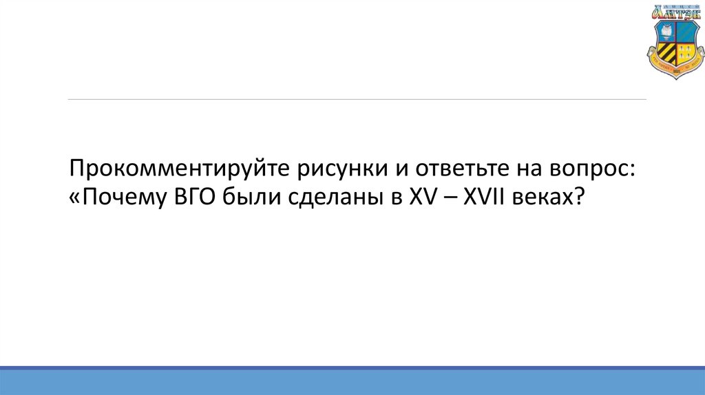 Прокомментируйте рисунки и ответьте на вопрос:«Почему ВГО были сделаны в XV – XVII веках?