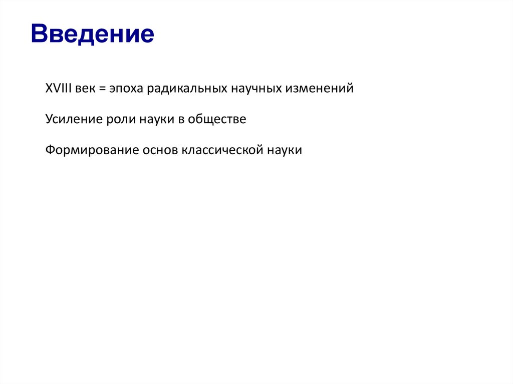 ВведениеXVIII век = эпоха радикальных научных изменений