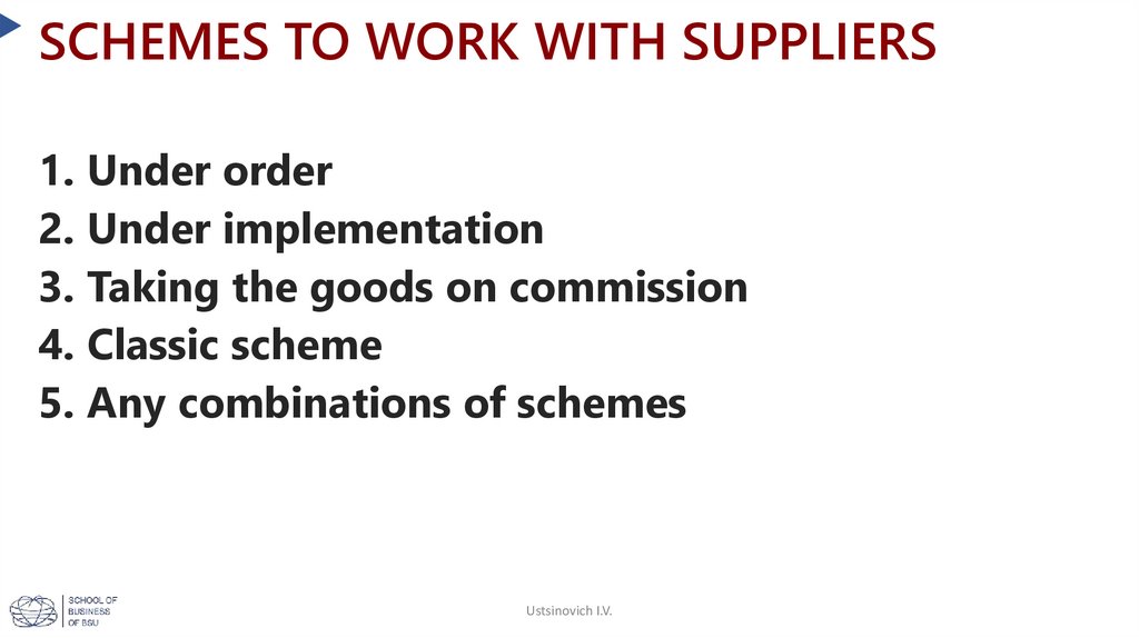 3. SCHEMES TO WORK WITH SUPPLIERSUstsinovich I.V.