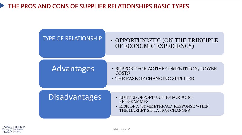 8. THE PROS AND CONS OF SUPPLIER RELATIONSHIPS BASIC TYPES