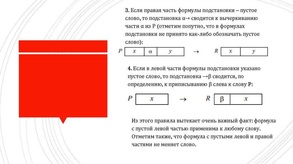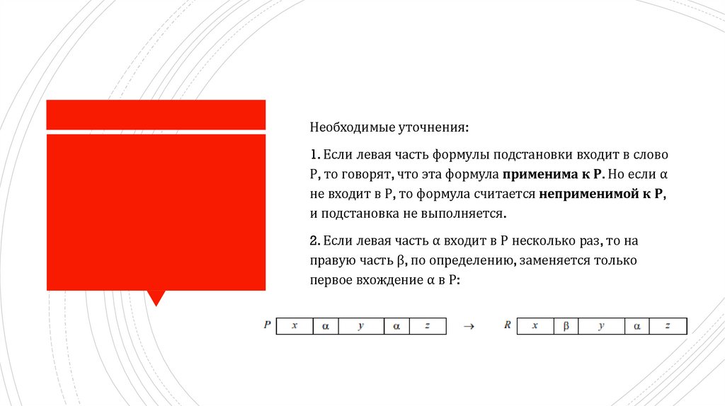 Необходимые уточнения:1. Если левая часть формулы подстановки входит в слово