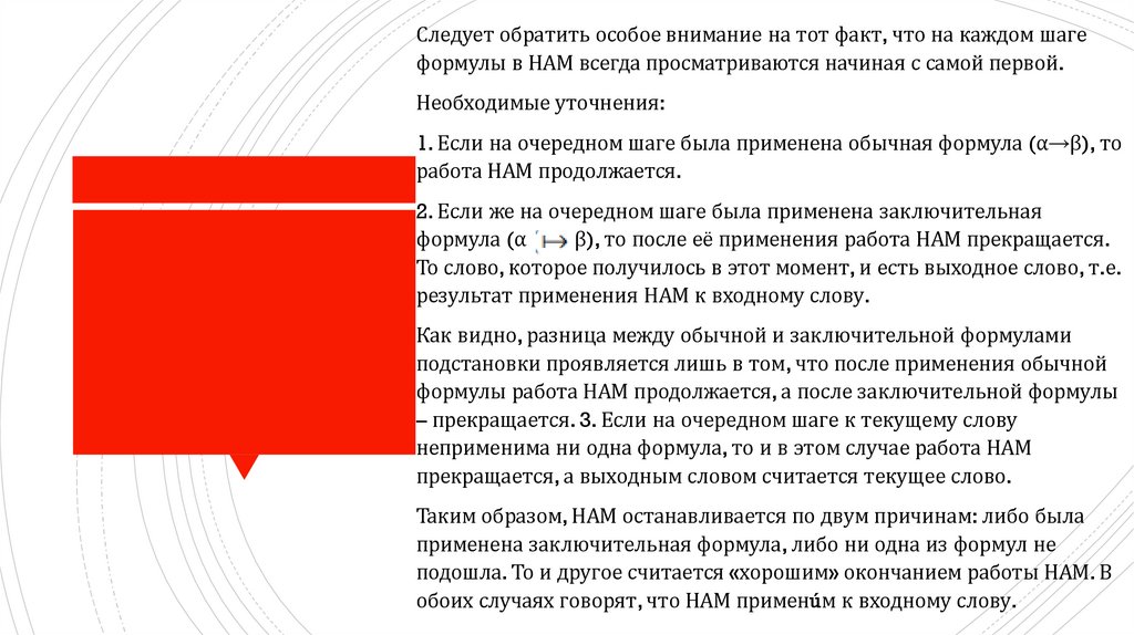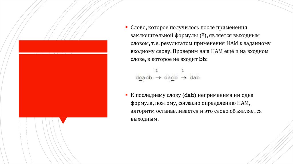 Слово, которое получилось после применениязаключительной формулы (2), является выходным
