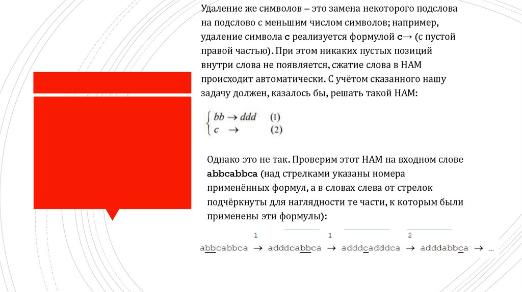 Подстановки Интересной особенностью нормальныхалгоритмов Маркова (НАМ) является то, что в них
