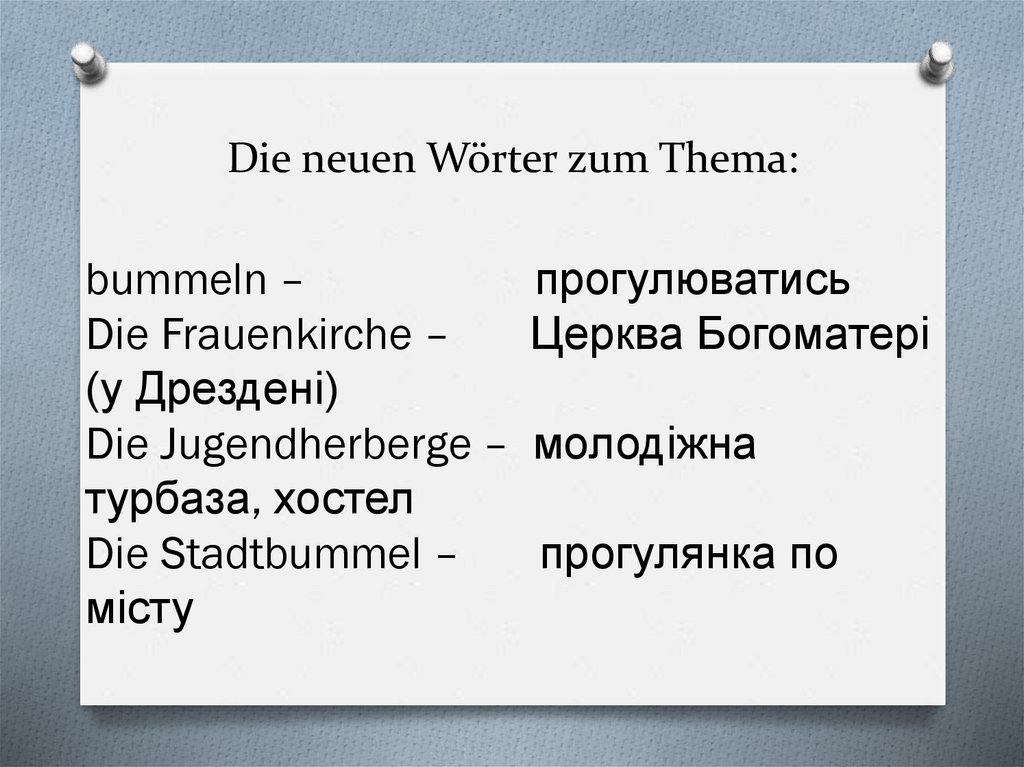 Reiseprogramm2. Die neuen Wörter zum Thema: