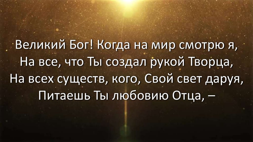 Великий Бог! Когда на мир смотрю я,На все, что Ты создал рукой Творца,