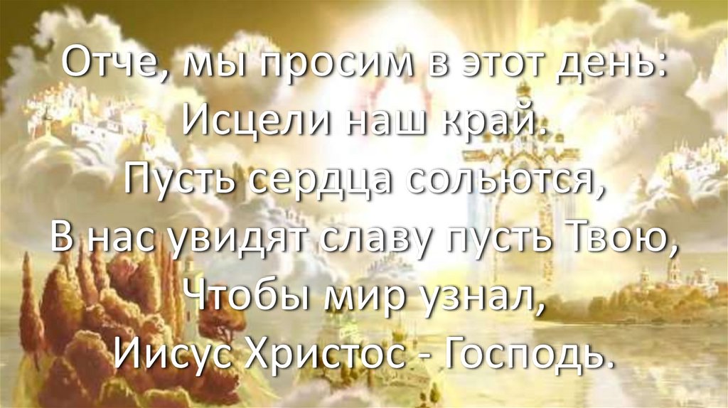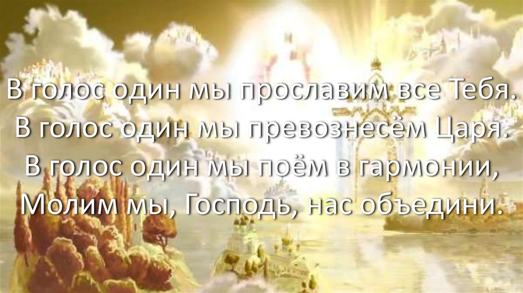 В голос один мы прославим все Тебя.В голос один мы превознесём Царя.