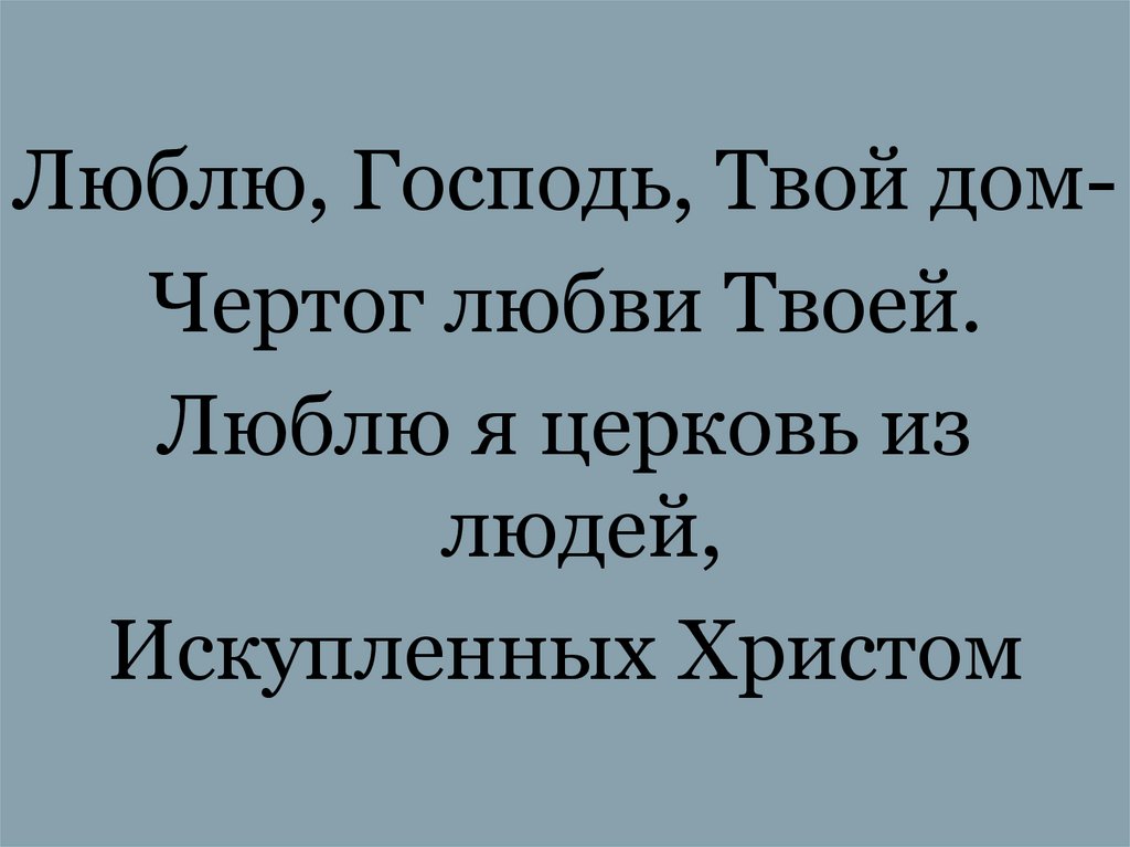 Люблю, Господь, Твой домЧертог любви Твоей.Люблю я церковь из