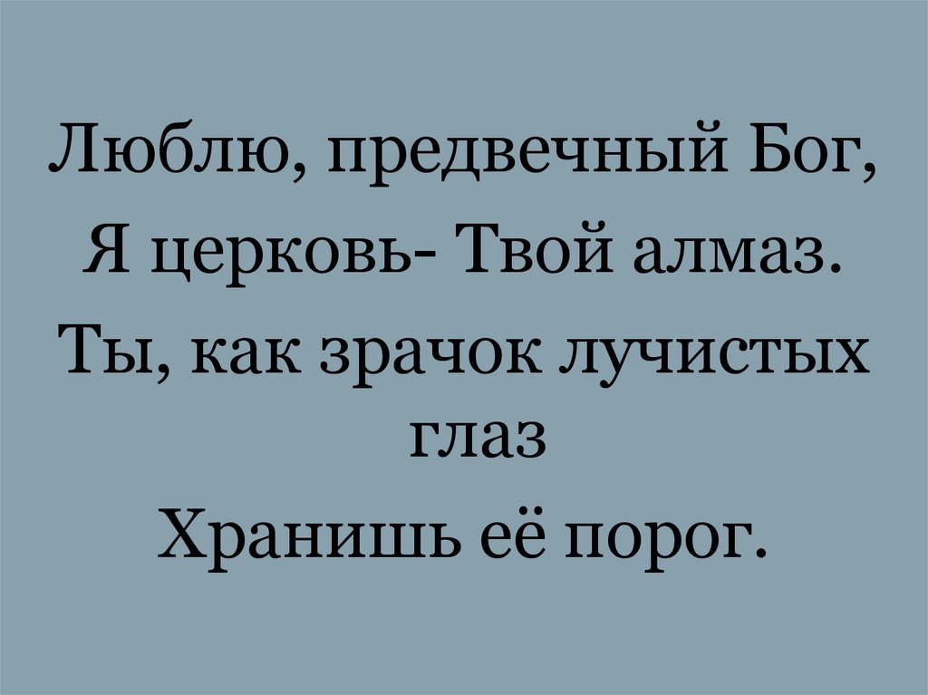 Люблю, предвечный Бог,Я церковь- Твой алмаз.