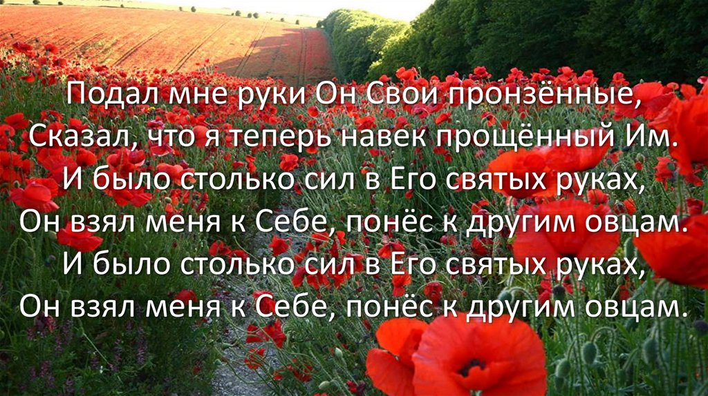 Подал мне руки Он Свои пронзённые,Сказал, что я теперь навек прощённый Им.