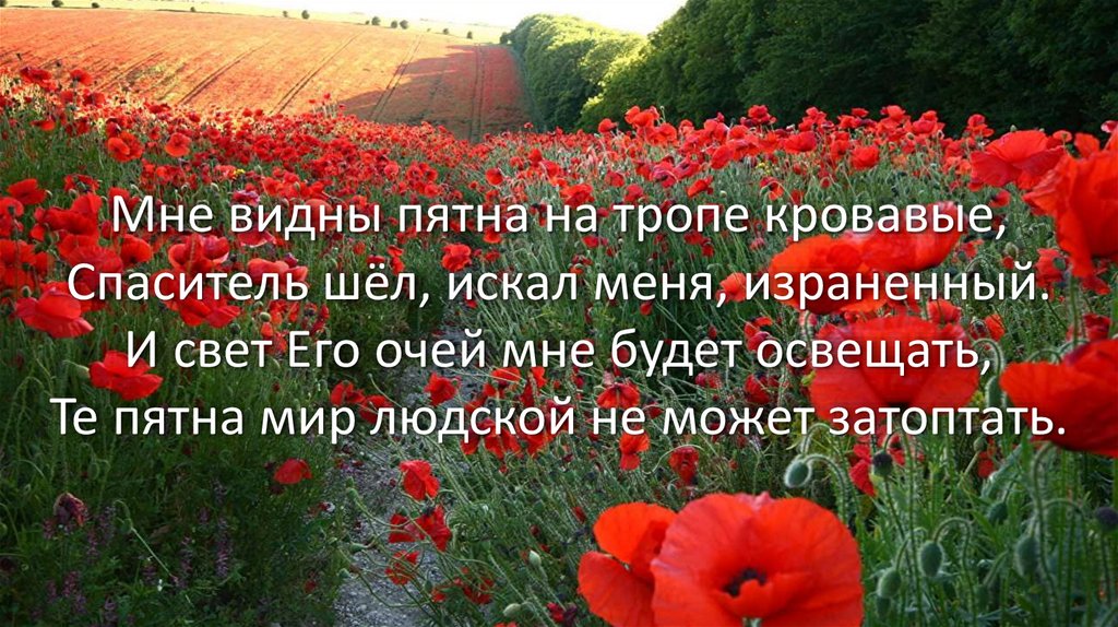 Мне видны пятна на тропе кровавые,Когда-то шёл по ней Христос израненный.