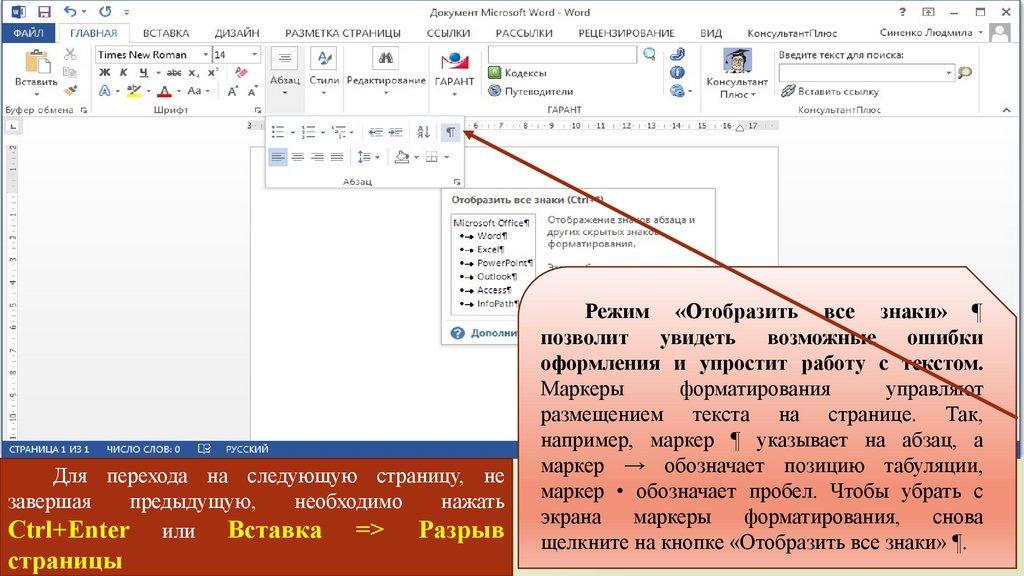 щелкните на кнопке «Отобразить все знаки» ¶.