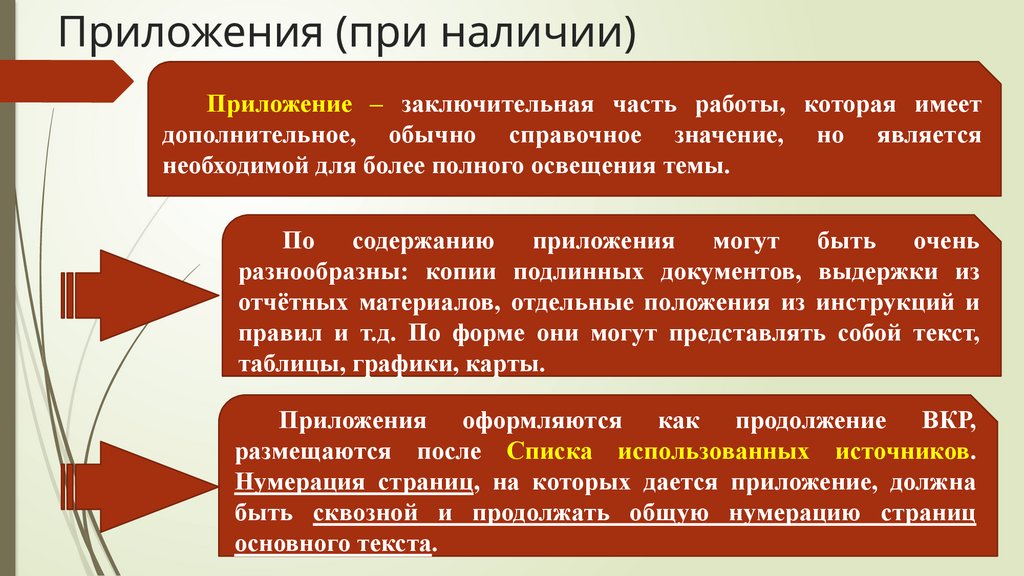 Приложения (при наличии)Приложение – заключительная часть работы, которая имеет