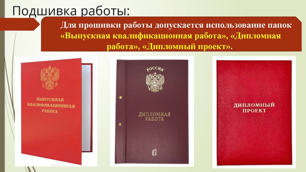 Для прошивки работы допускается использование папок«Выпускная квалификационная работа», «Дипломная