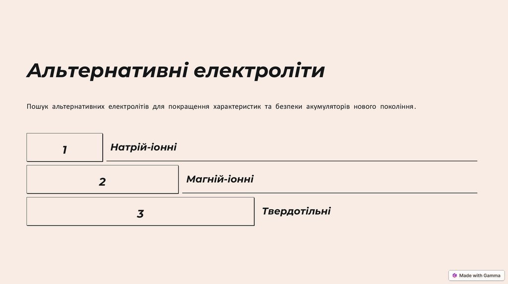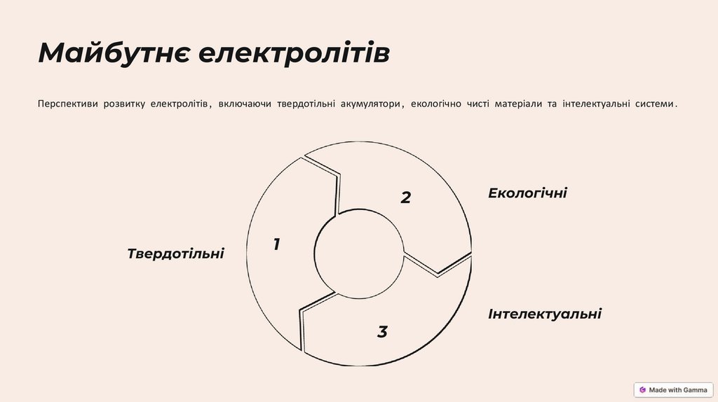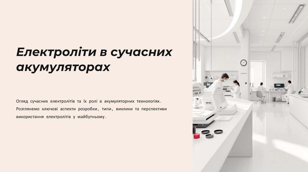 Майбутнє електролітівПерспективи розвитку електролітів, включаючи твердотільні акумулятори, екологічно чисті матеріали та інтелектуальні системи.