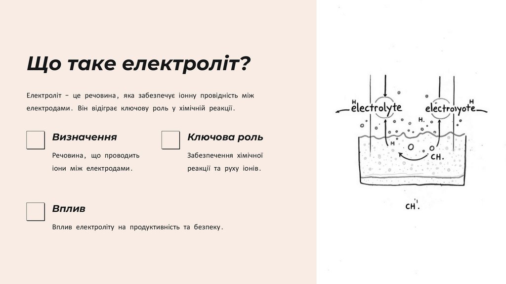 електродами. Він відіграє ключову роль у хімічній реакції.