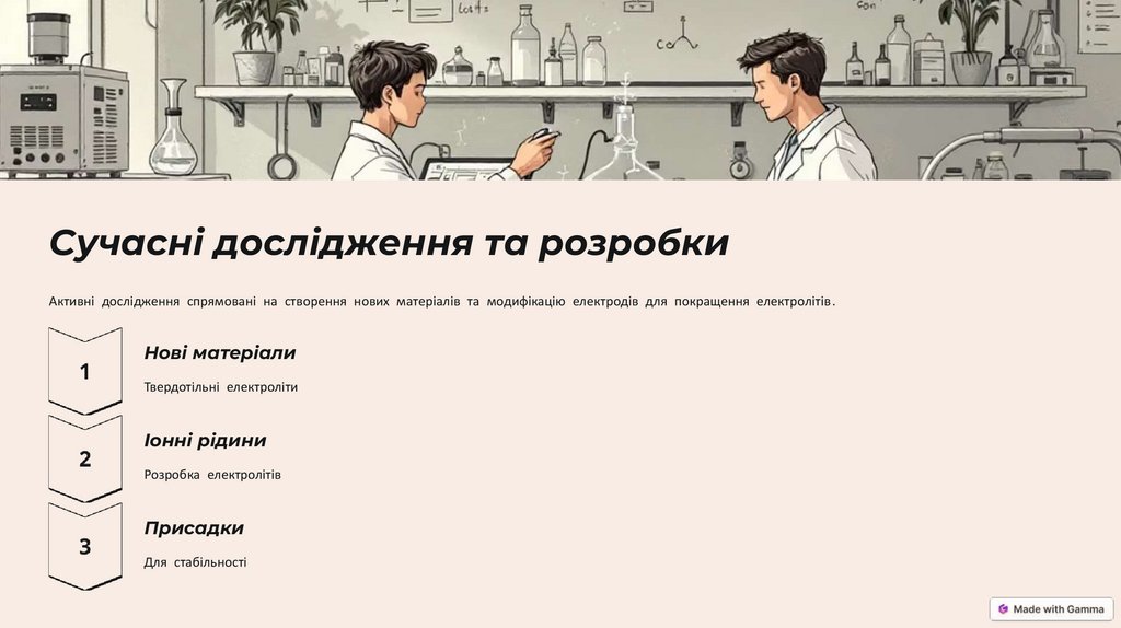 Сучасні дослідження та розробкиАктивні дослідження спрямовані на створення нових матеріалів та модифікацію електродів для покращення електролітів.