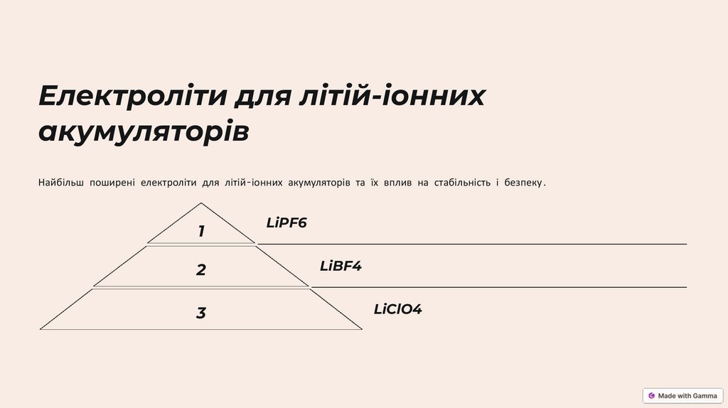 Найбільш поширені електроліти для літій-іонних акумуляторів та їх вплив на стабільність і безпеку.