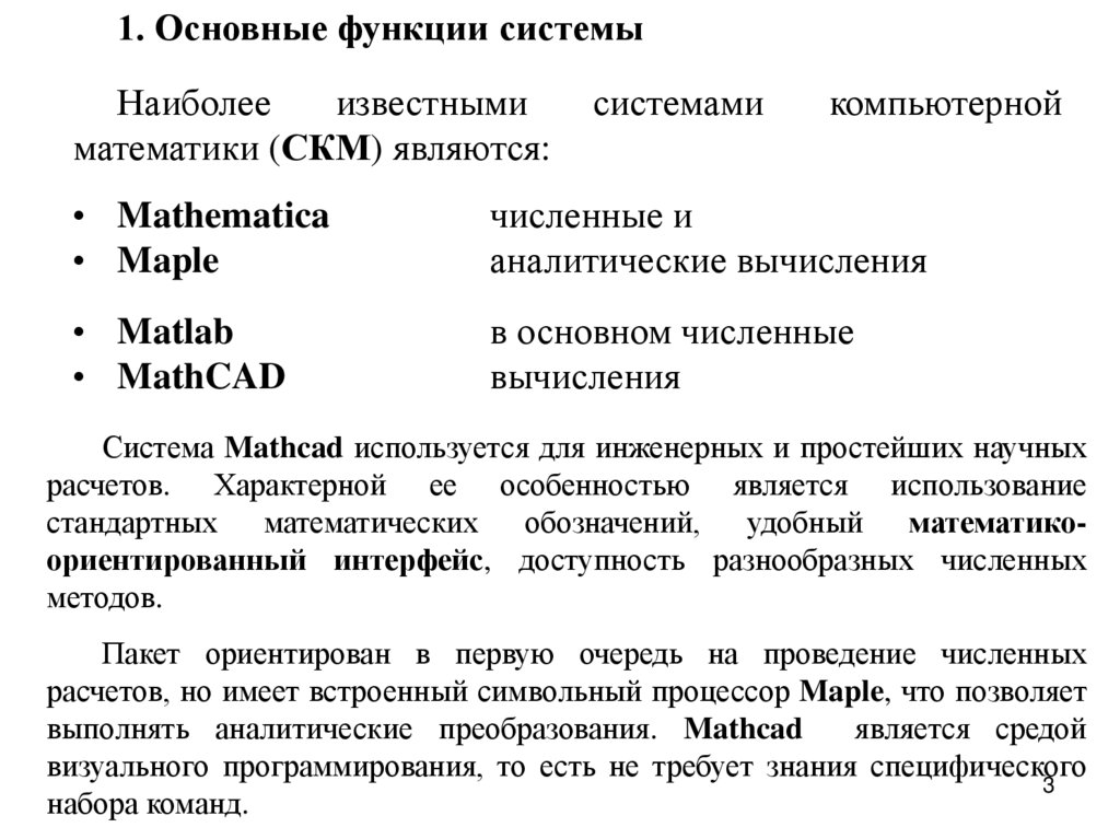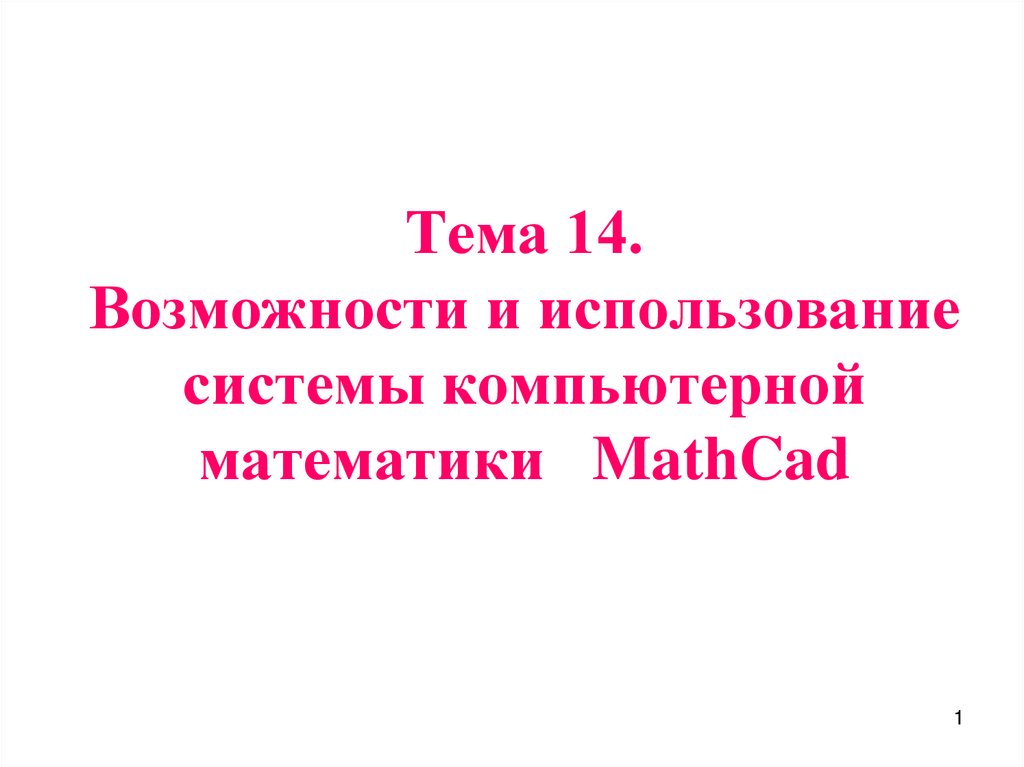 1. Тема 14. Возможности и использование системы компьютерной математики MathCad