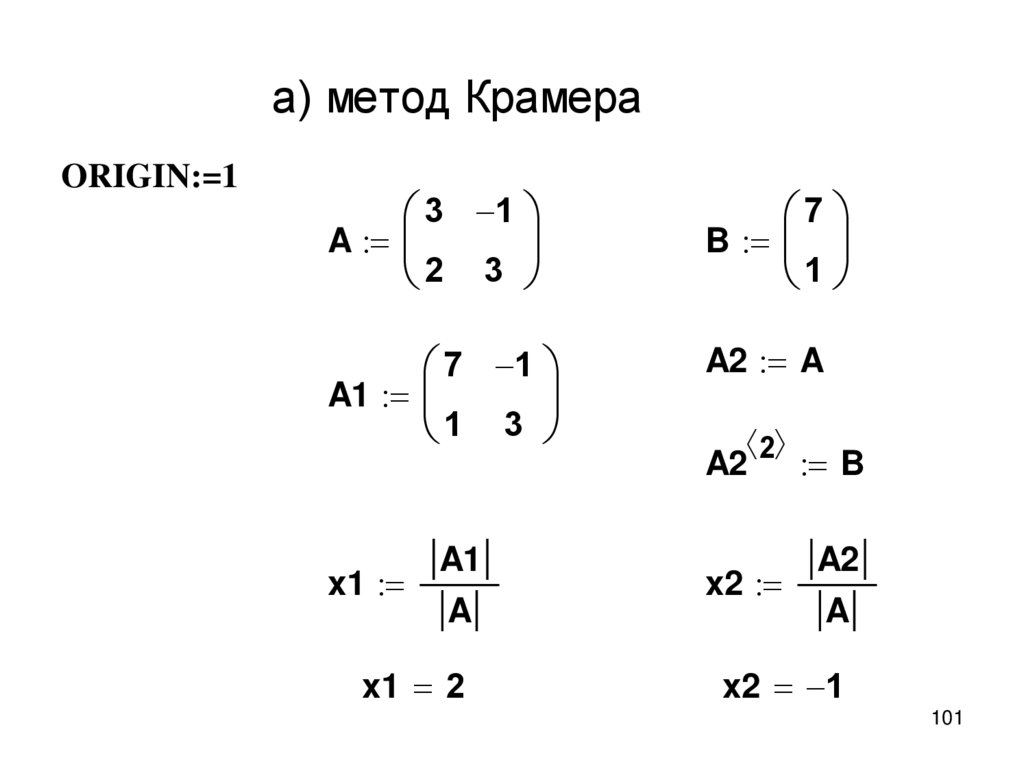 Если определитель матрицы А не равен нулю, то системаимеет единственное решение.