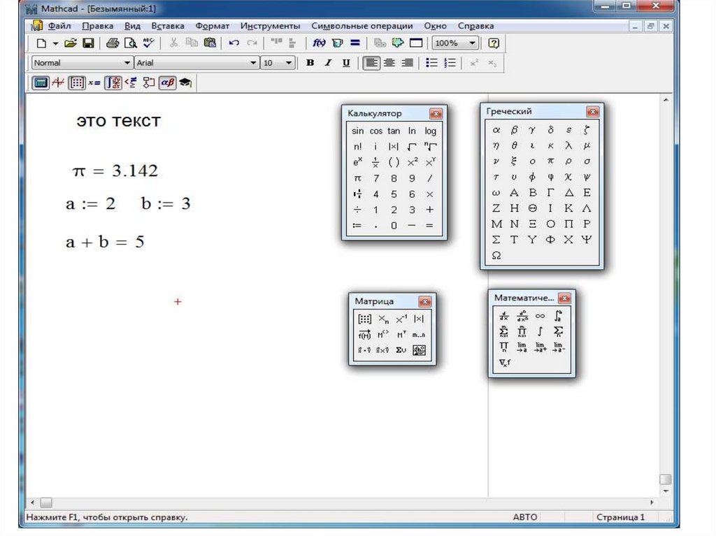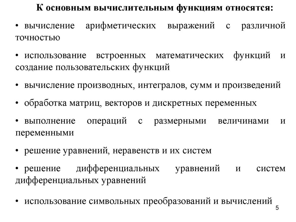 стандартных математических обозначений, удобный математикоориентированный интерфейс, доступность разнообразных численных