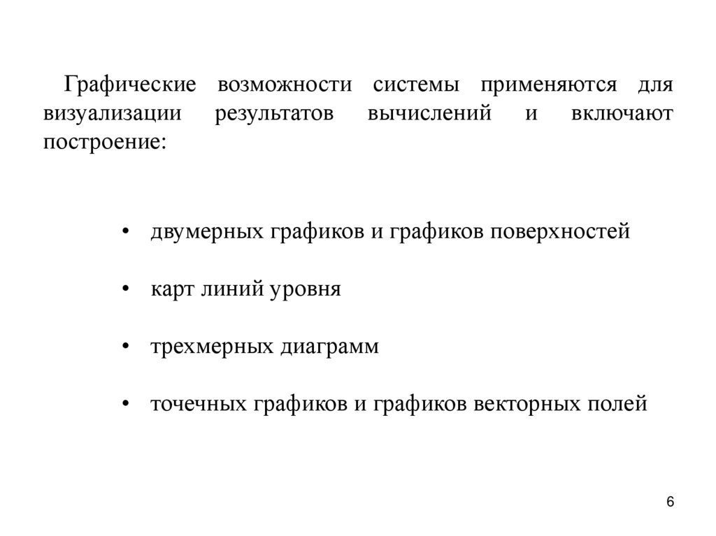 Графические возможности системы применяются длявизуализации результатов вычислений и включают