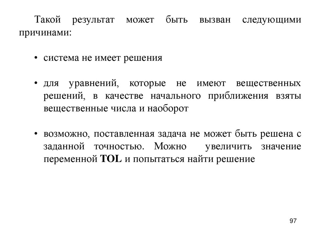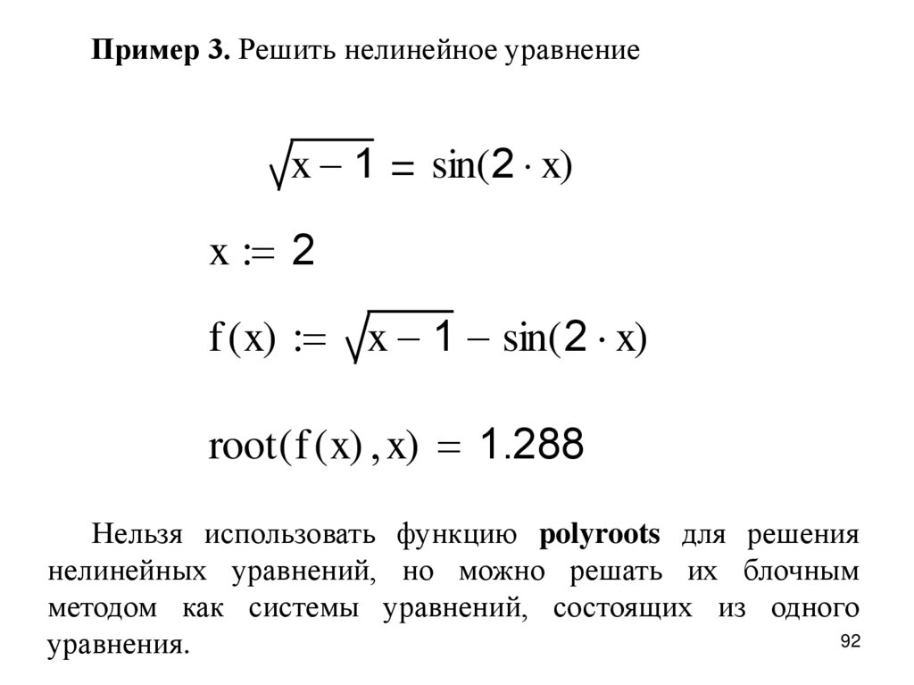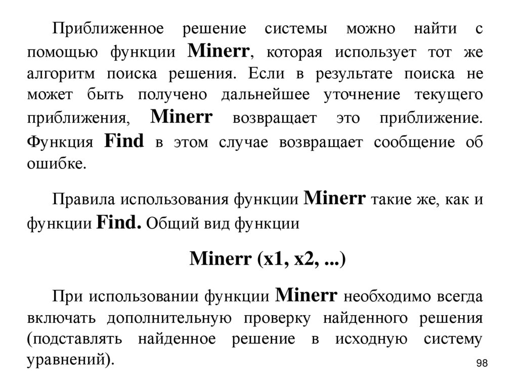 Приближенное решение системы можно найти спомощью функции Minerr, которая использует тот же