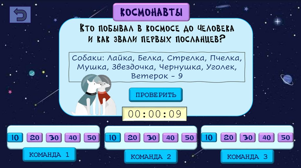 Собаки: Лайка, Белка, Стрелка, Пчелка,