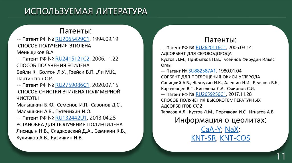 ИСПОЛЬЗУЕМАЯ ЛИТЕРАТУРАПатенты: