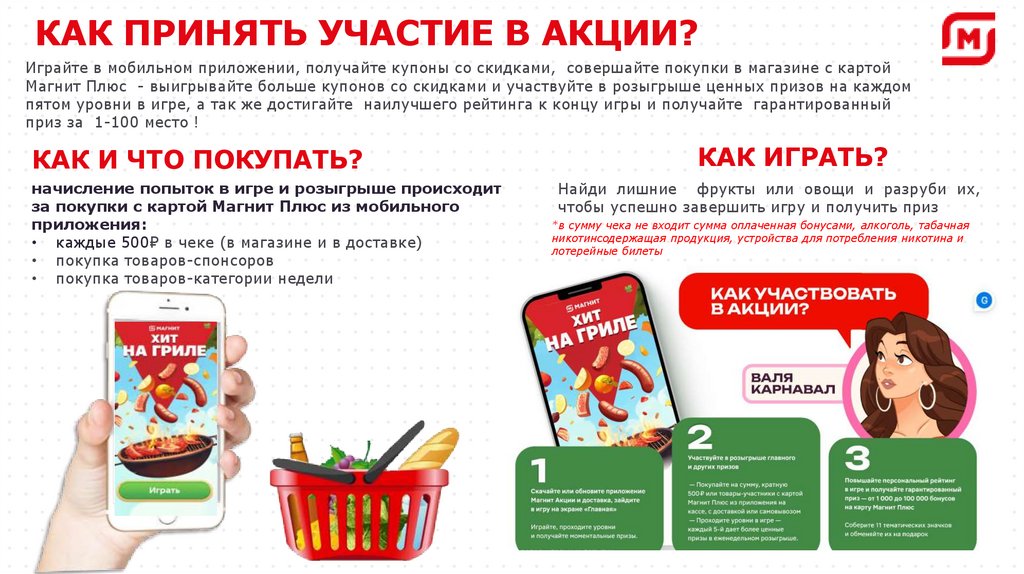 КАК ПРИНЯТЬ УЧАСТИЕ В АКЦИИ?Играйте в мобильном приложении, получайте купоны со скидками, совершайте покупки в магазине с картой