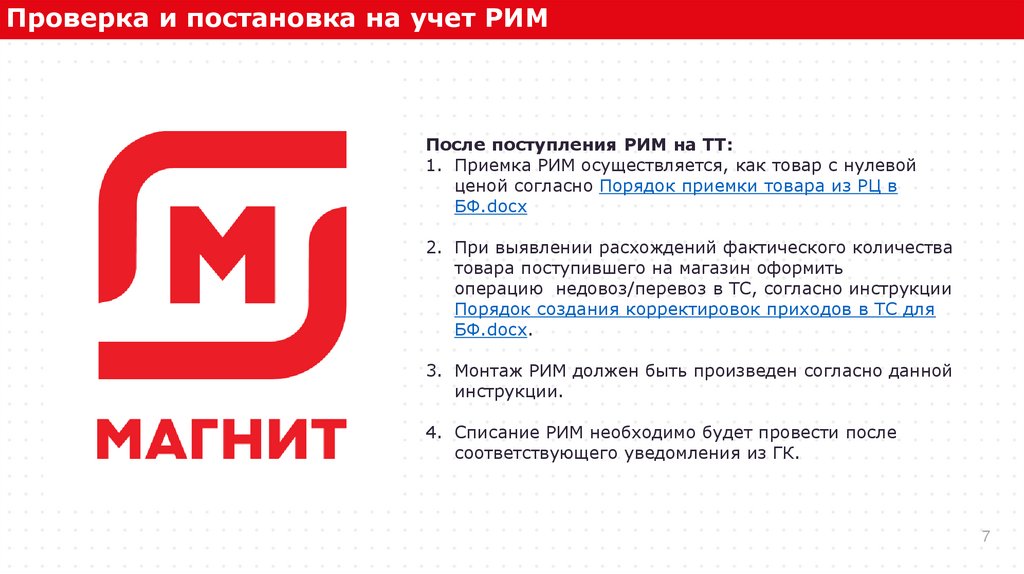 Что нужно знать сотрудникам магазина1. Все РИМ необходимо принять как товар и